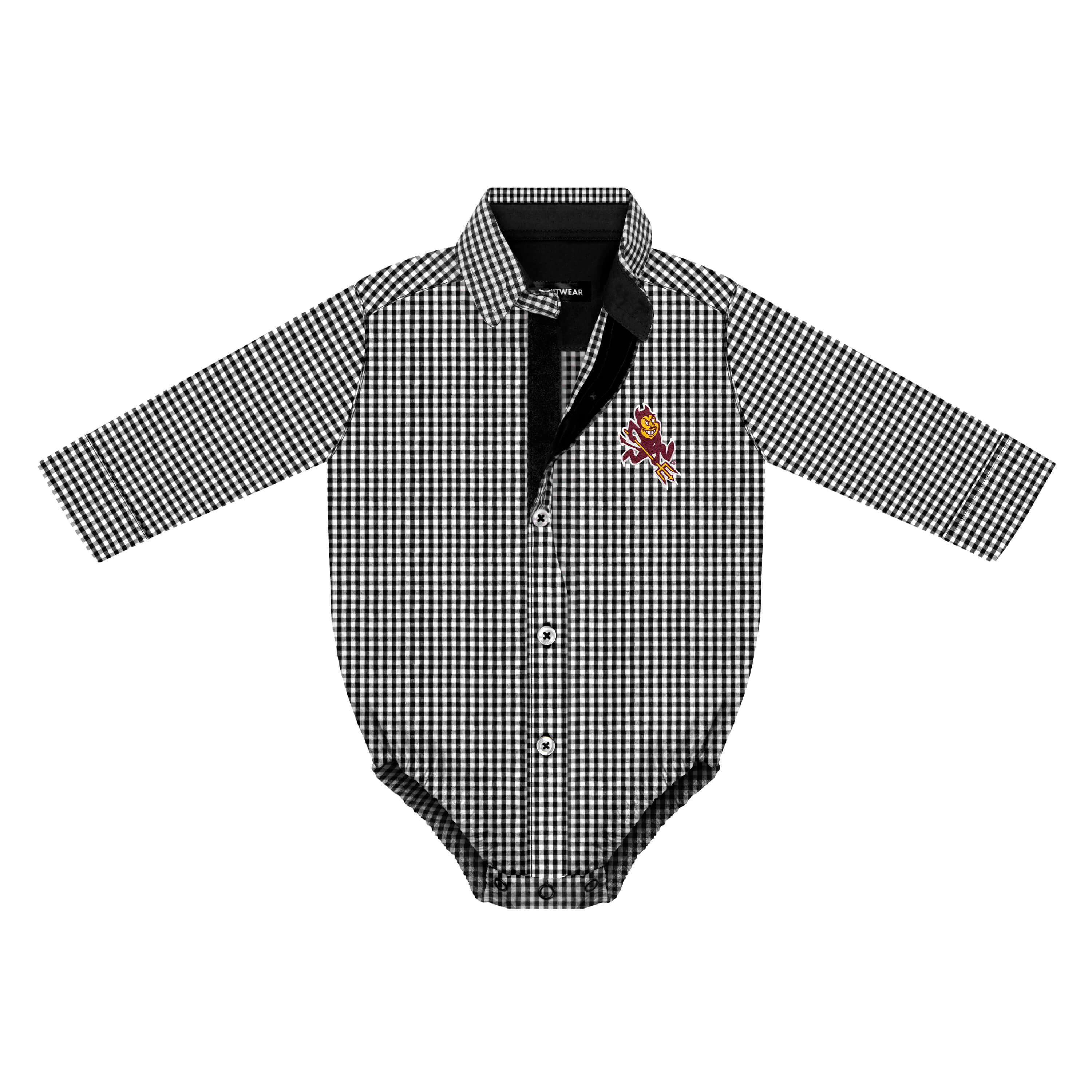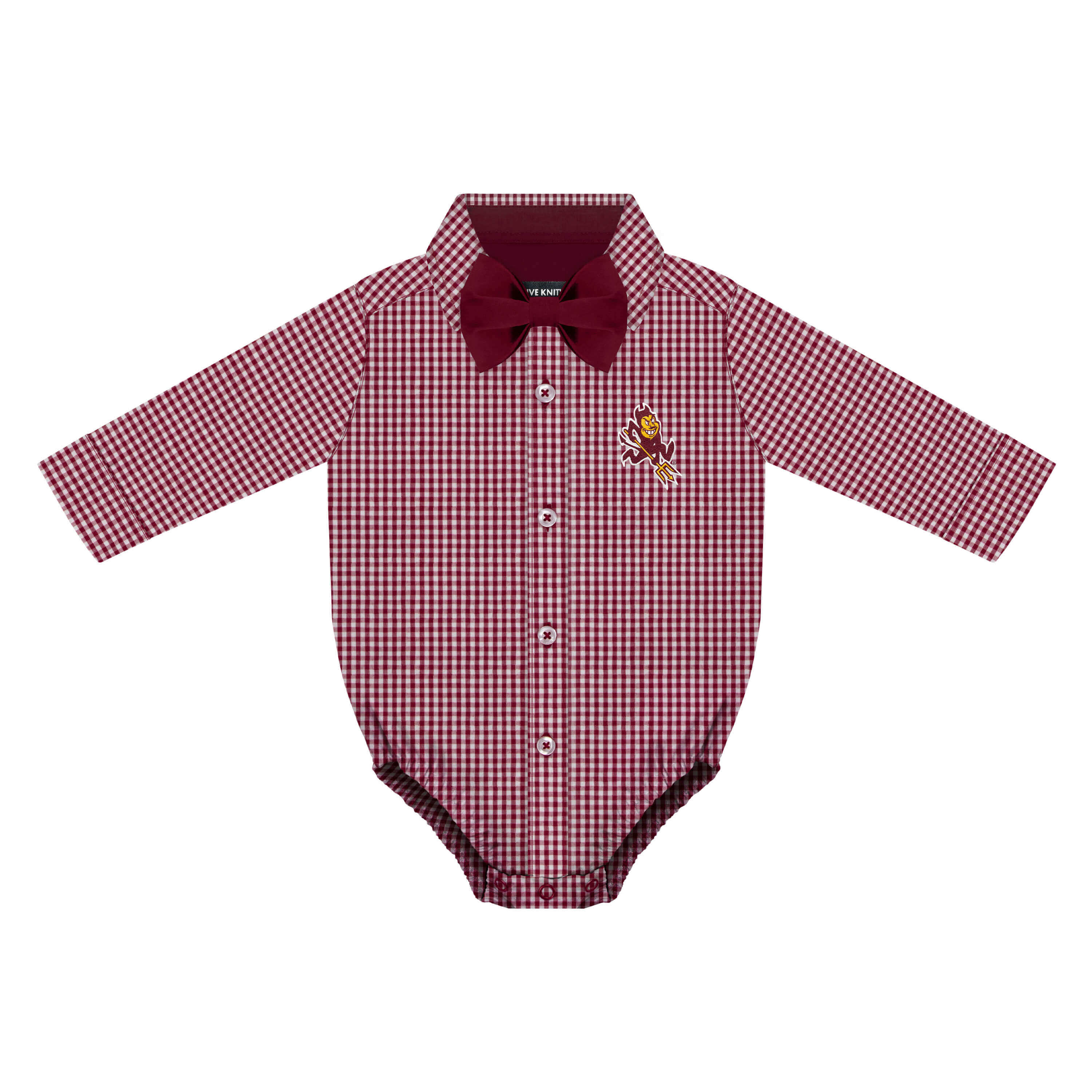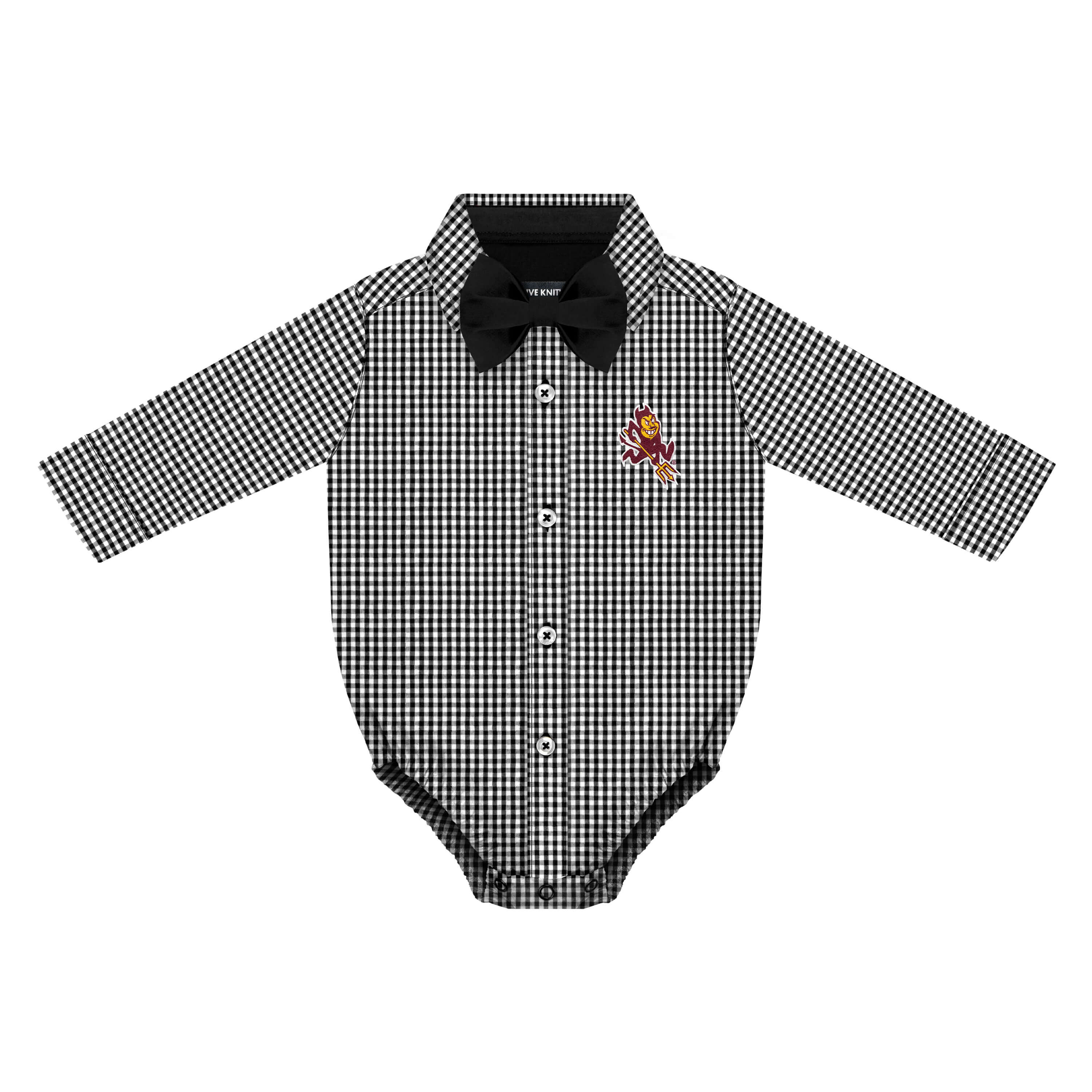 Make dressing your baby a breeze with our Black Label brand gingham button-up bodysuits, designed for superior softness and style. These bodysuits offer the appearance of traditional button-up shirts but feature a practical hook and loop fastener for quick changes. Opt for a formal look with the pre-tied bowtie which also features a practical hook and loop fastener or keep it casual when undone – they're perfect for all events and come with a wrinkle-resistant finish, ensuring your baby looks impeccable on the move. Officially licensed - featuring team embroidery.