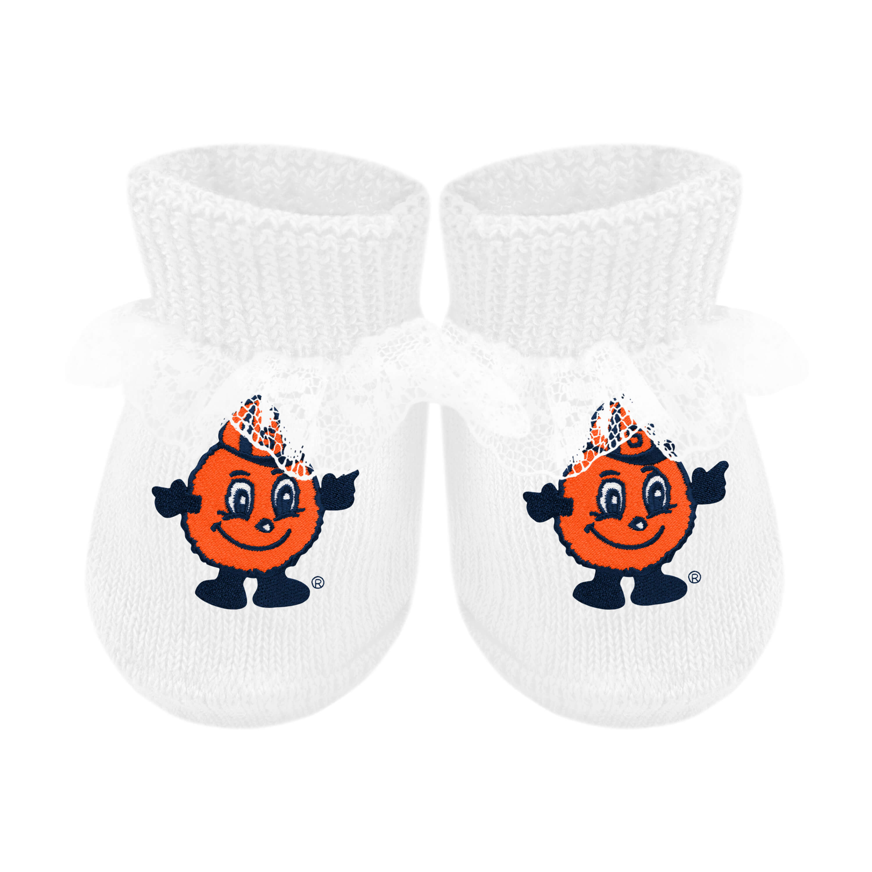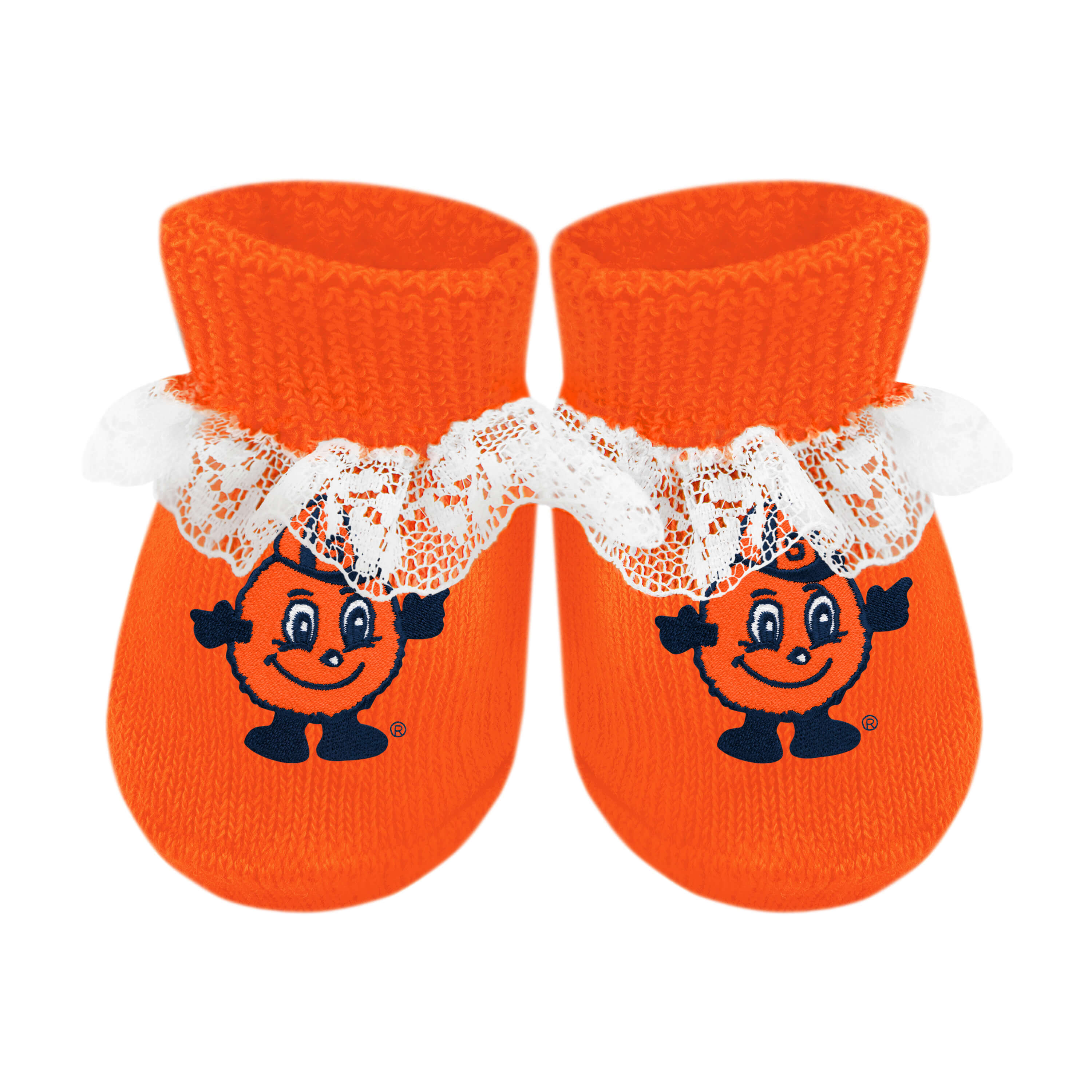 "Take me home from the hospital booties" comes in its own organza bag and is sized just right for the baby's first pair of booties! Featuring a beautiful lace for the new baby girl. Officially licensed - featuring team embroideries.